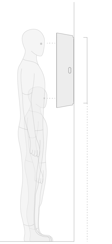 The station operates for a range of body sizes. The animated interface intuitively guides users gazes to the correct position to complete the measurement process.